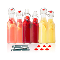Garrafas de vidro de 16 oz com funil, conjunto de 4 garrafas com tampa superior de flip